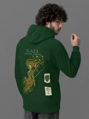 Made from premium 100% cotton, this 300 GSM brushed-fleece hoodie feels solid yet soft, warm without bulk, and unmistakably premium the moment you put it on. The unisex cut sits clean on the body and pairs easily with denim, cargos, or layered fits, while the Gaia artwork on the back turns you into a moving canvas of living earth.