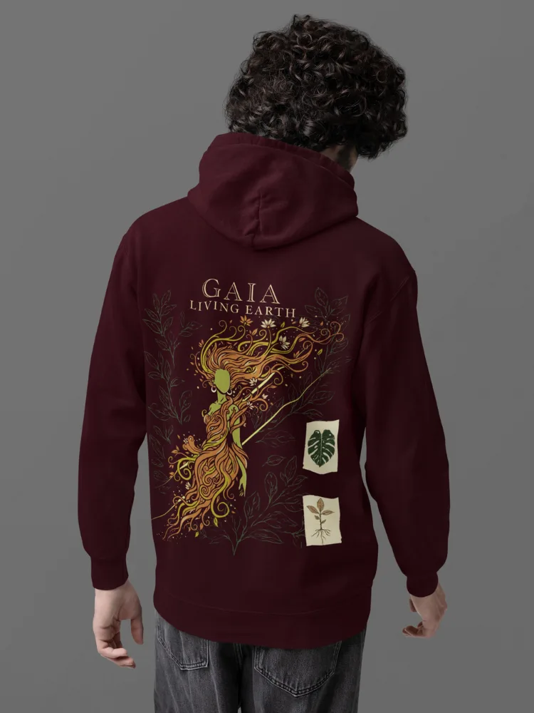 Made from premium 100% cotton, this 300 GSM brushed-fleece hoodie feels solid yet soft, warm without bulk, and unmistakably premium the moment you put it on. The unisex cut sits clean on the body and pairs easily with denim, cargos, or layered fits, while the Gaia artwork on the back turns you into a moving canvas of living earth.