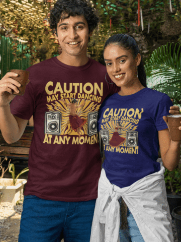 Let your spontaneous spirit shine with our “Caution: May Start Dancing at Any Moment” T-shirt. Perfect for those who live life to the beat of their own drum. 🎶