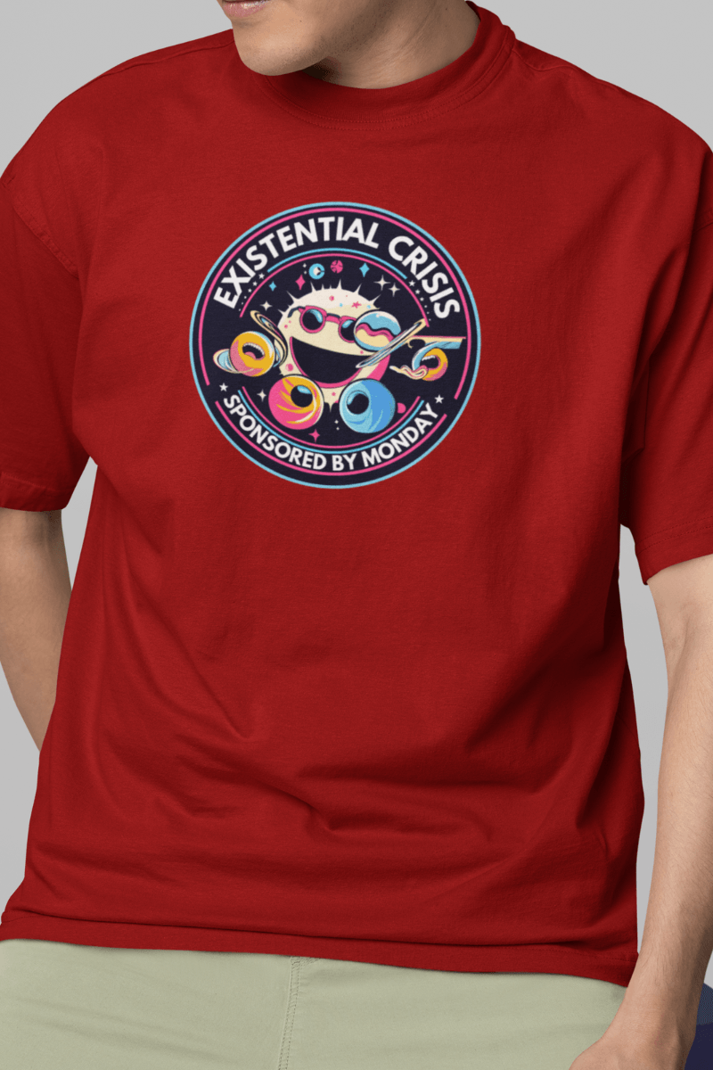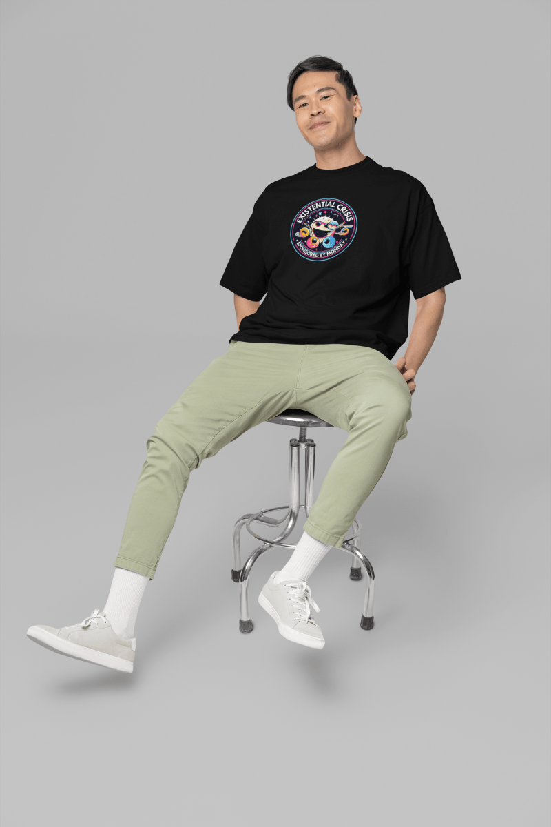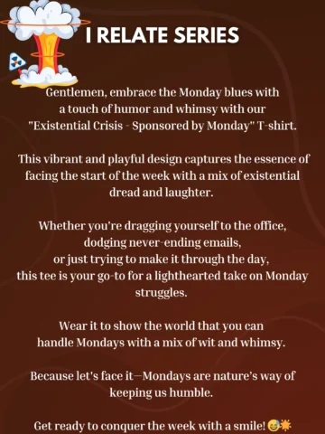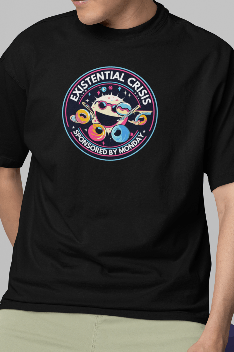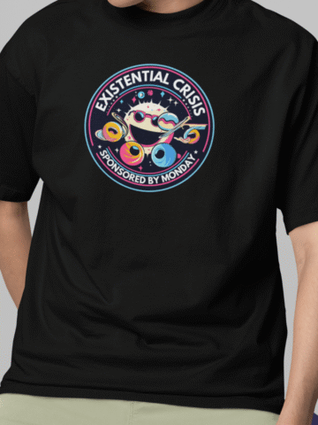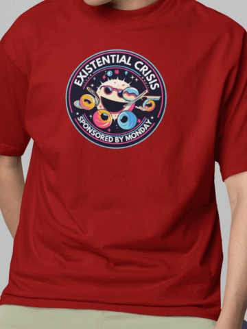 Got the Monday morning blues? Our “Existential Crisis – Sponsored by Monday” T-shirt is the quirky companion for you!