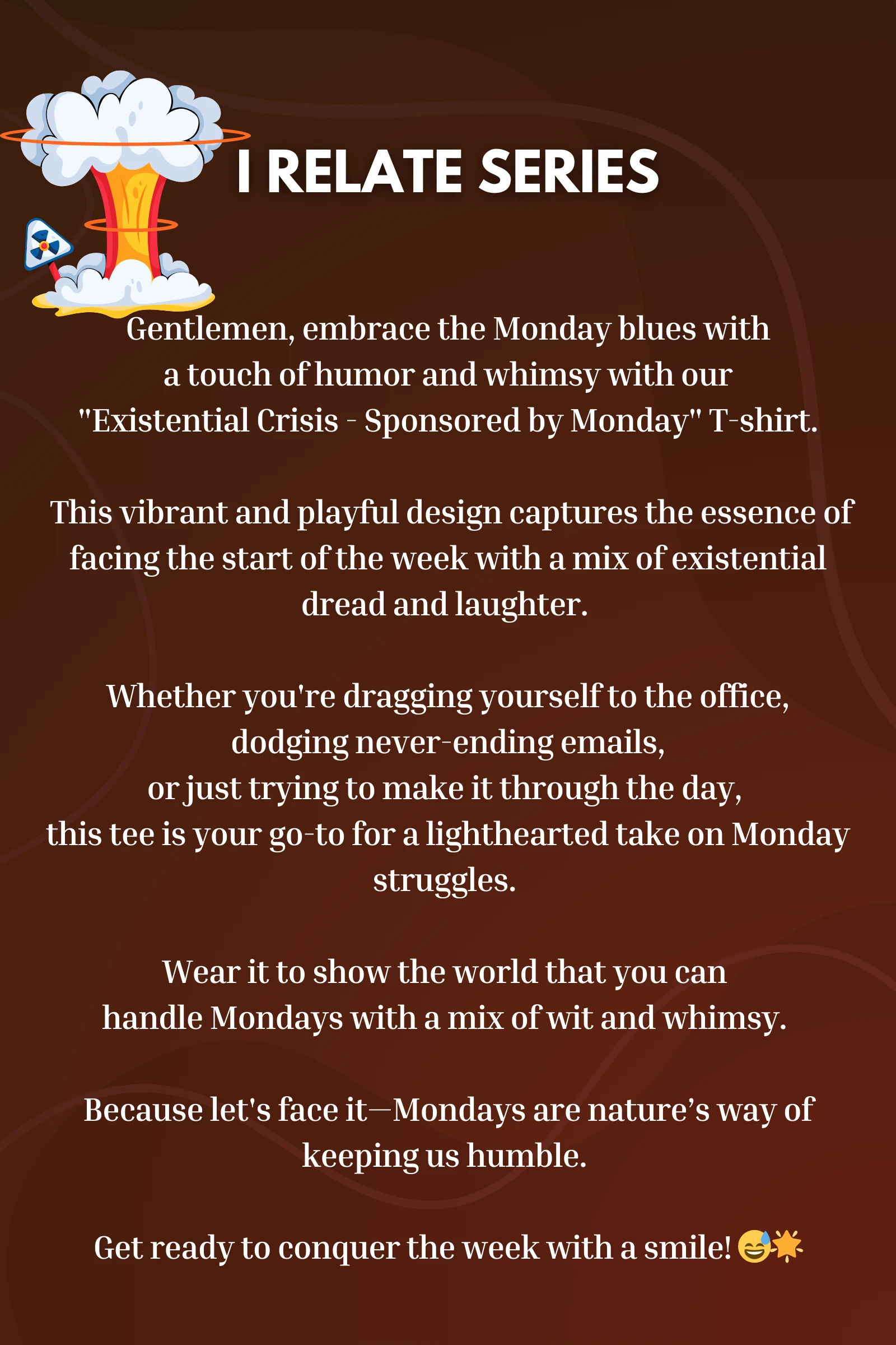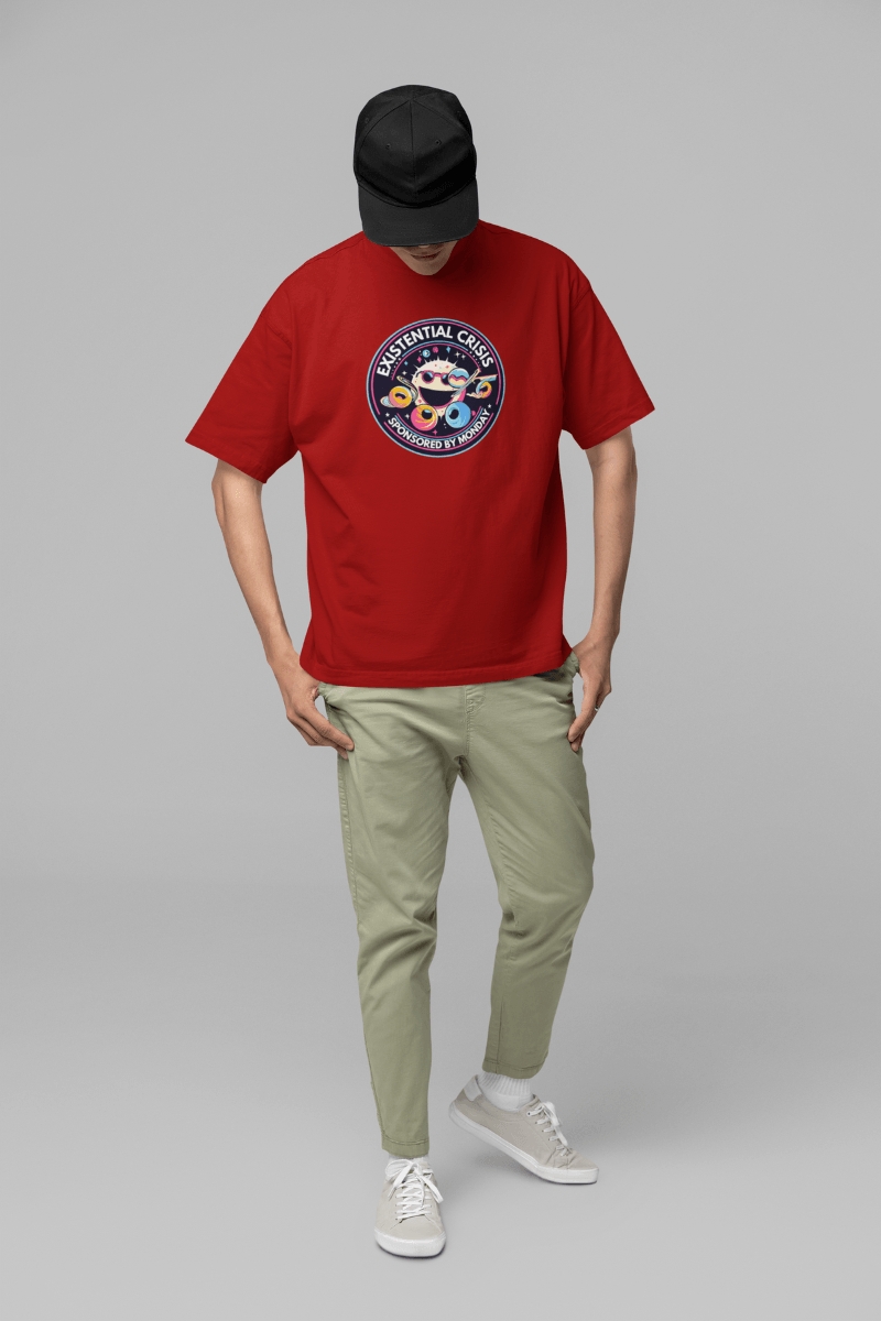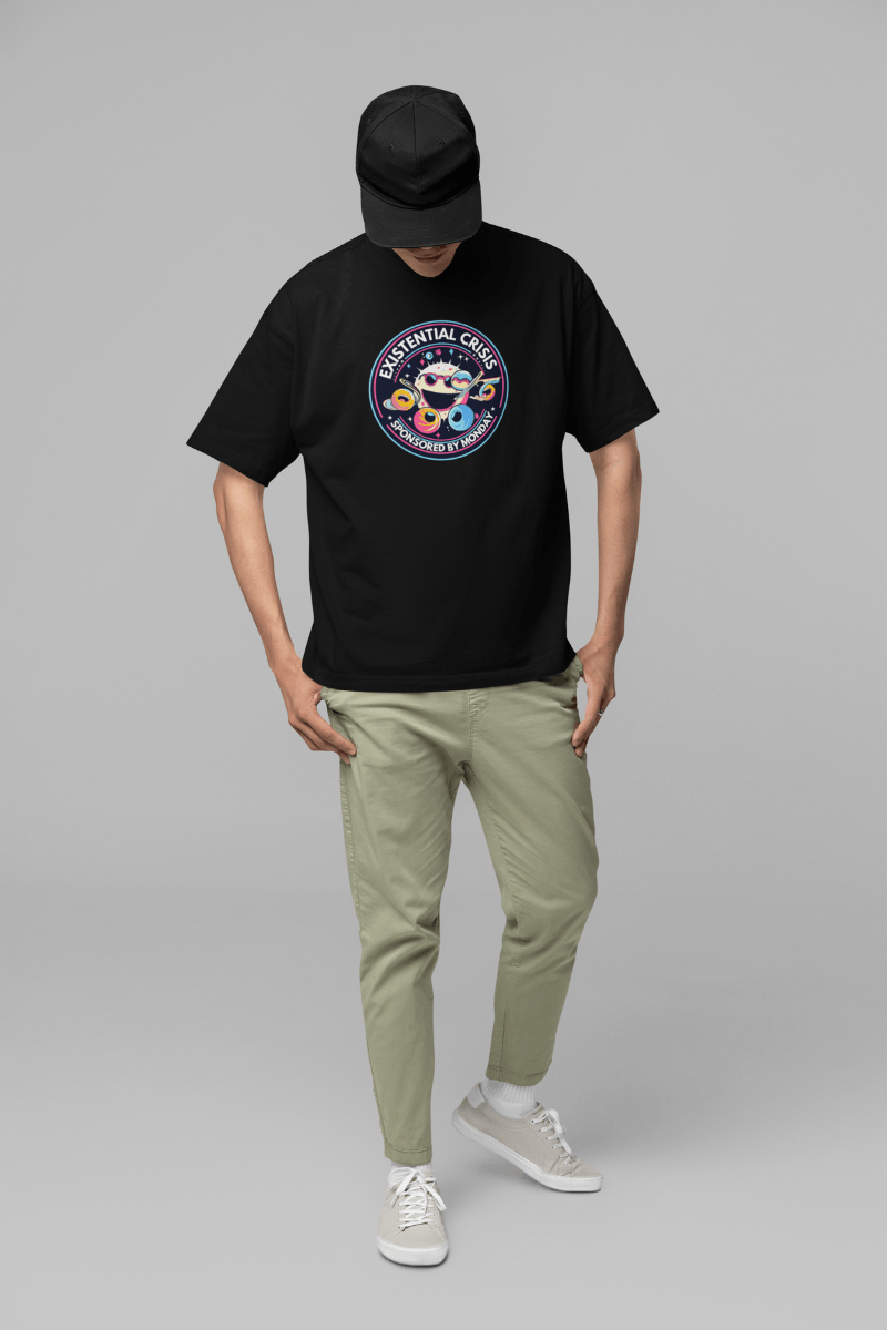 Got the Monday morning blues? Our “Existential Crisis – Sponsored by Monday” T-shirt is the quirky companion for you!