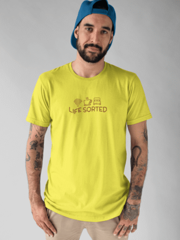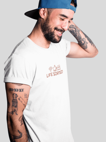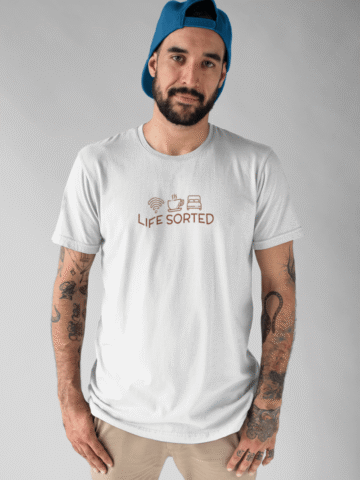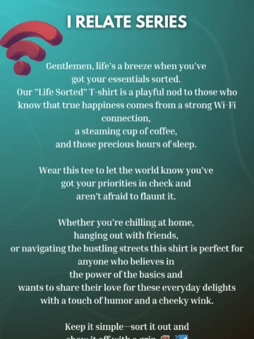 Lifeâs a breeze when youâve got your essentials sorted. Our “Life Sorted” T-shirt is a playful nod to those who know that true happiness comes from a strong Wi-Fi connection, a steaming cup of coffee, and those precious hours of sleep.