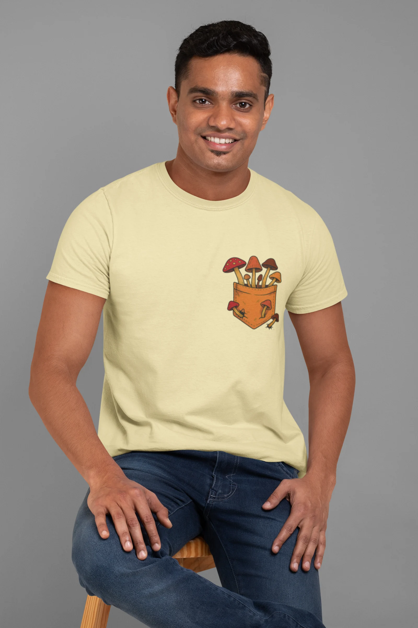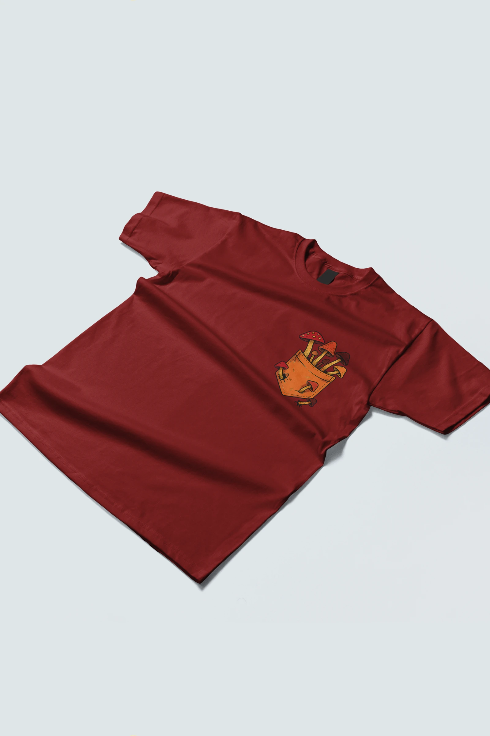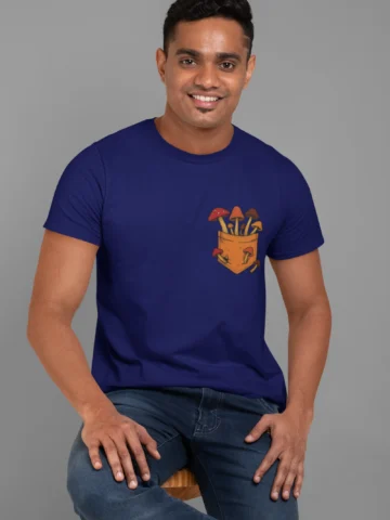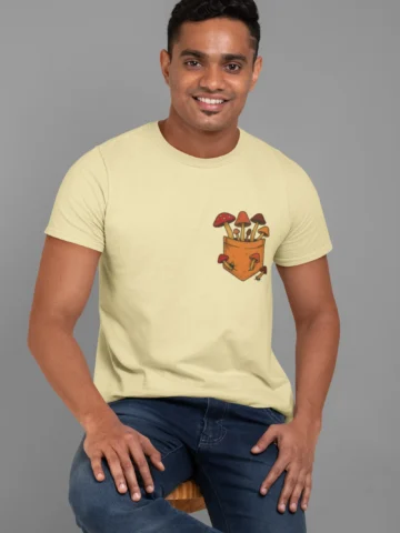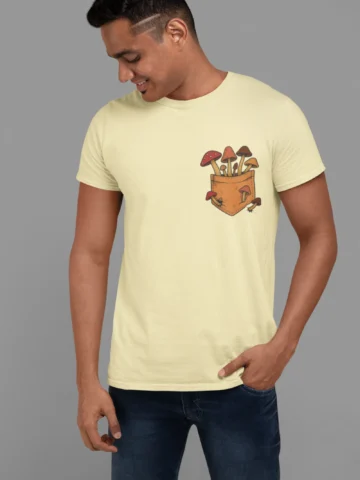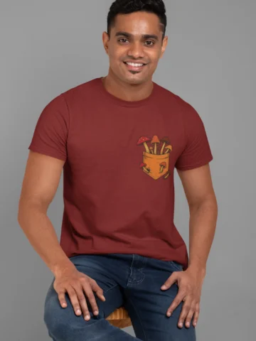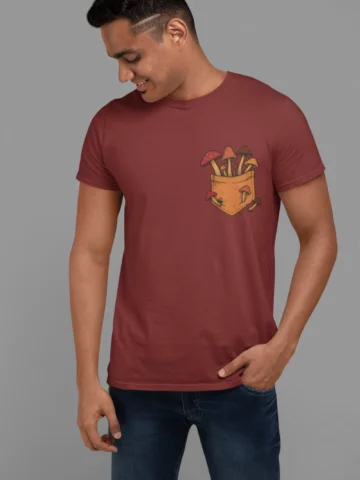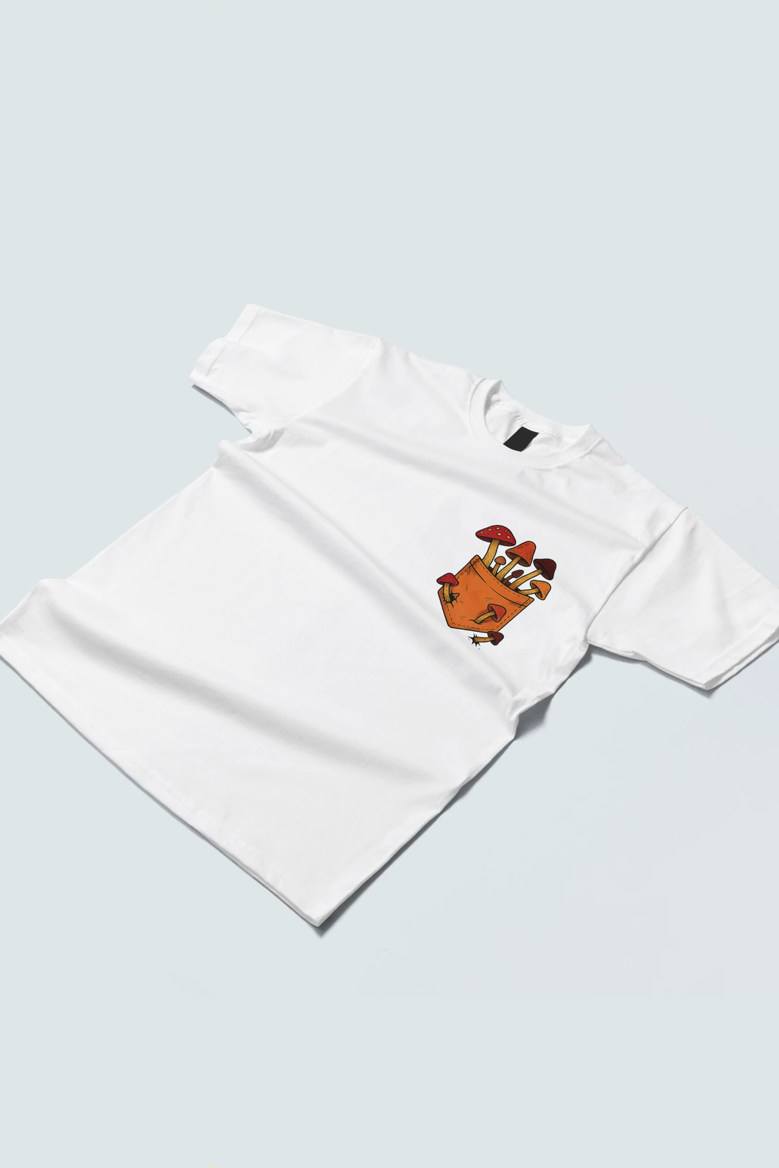This tee brings a bunch of mischievous mushrooms to your side β popping right out of a βstitched-upβ pocket like theyβve got somewhere to be (probably an afterparty in the forest). Red caps, long stems, and zero regrets.