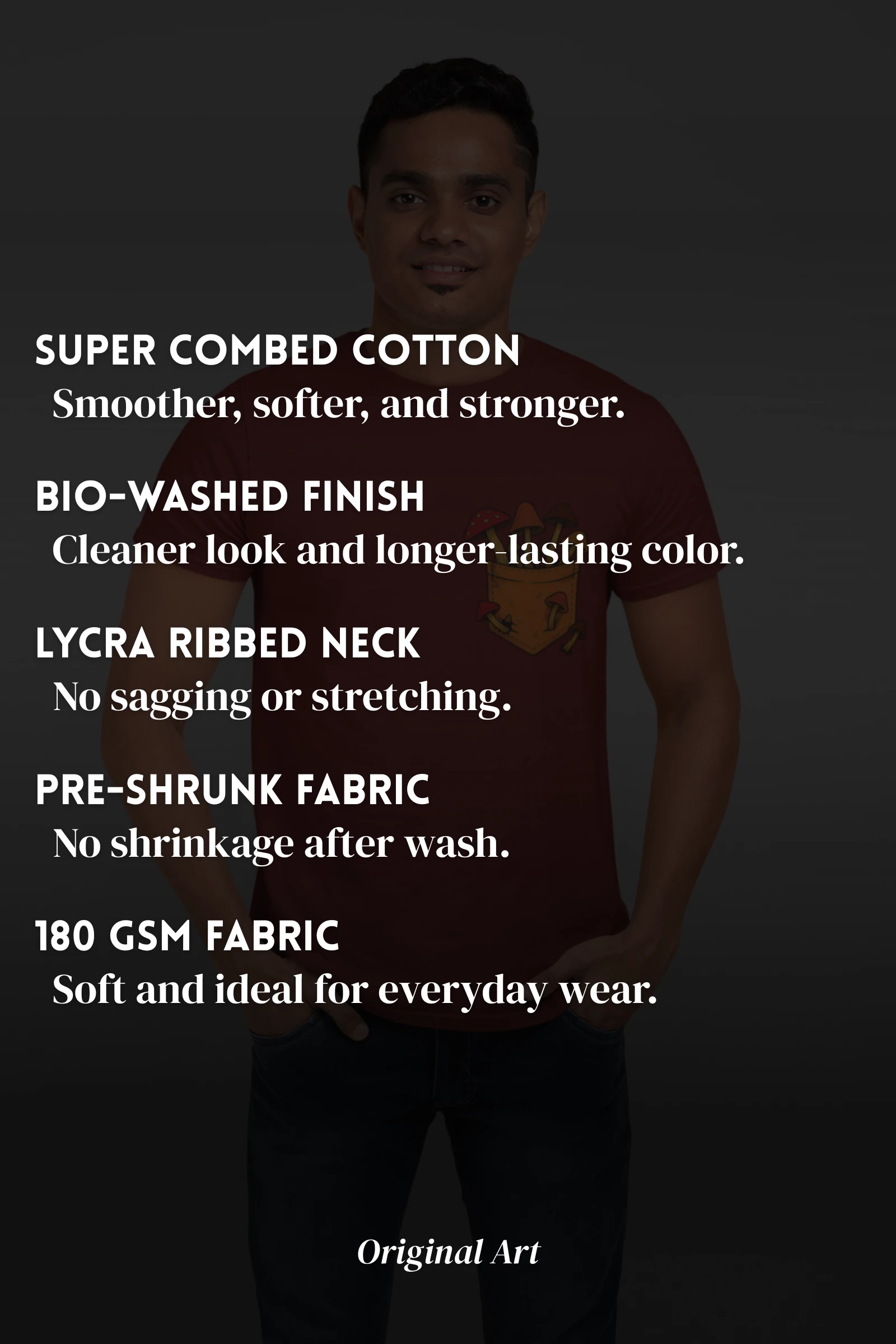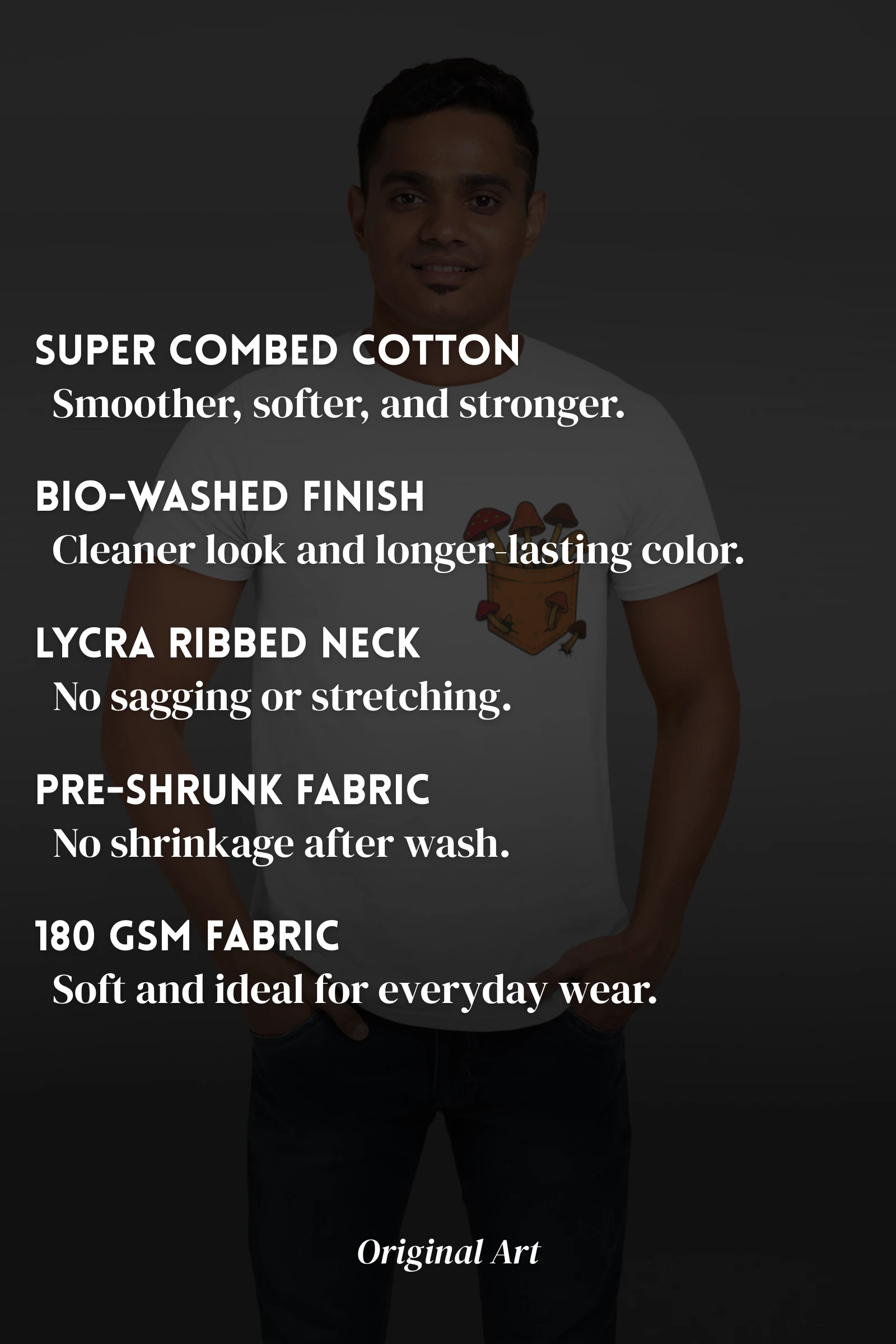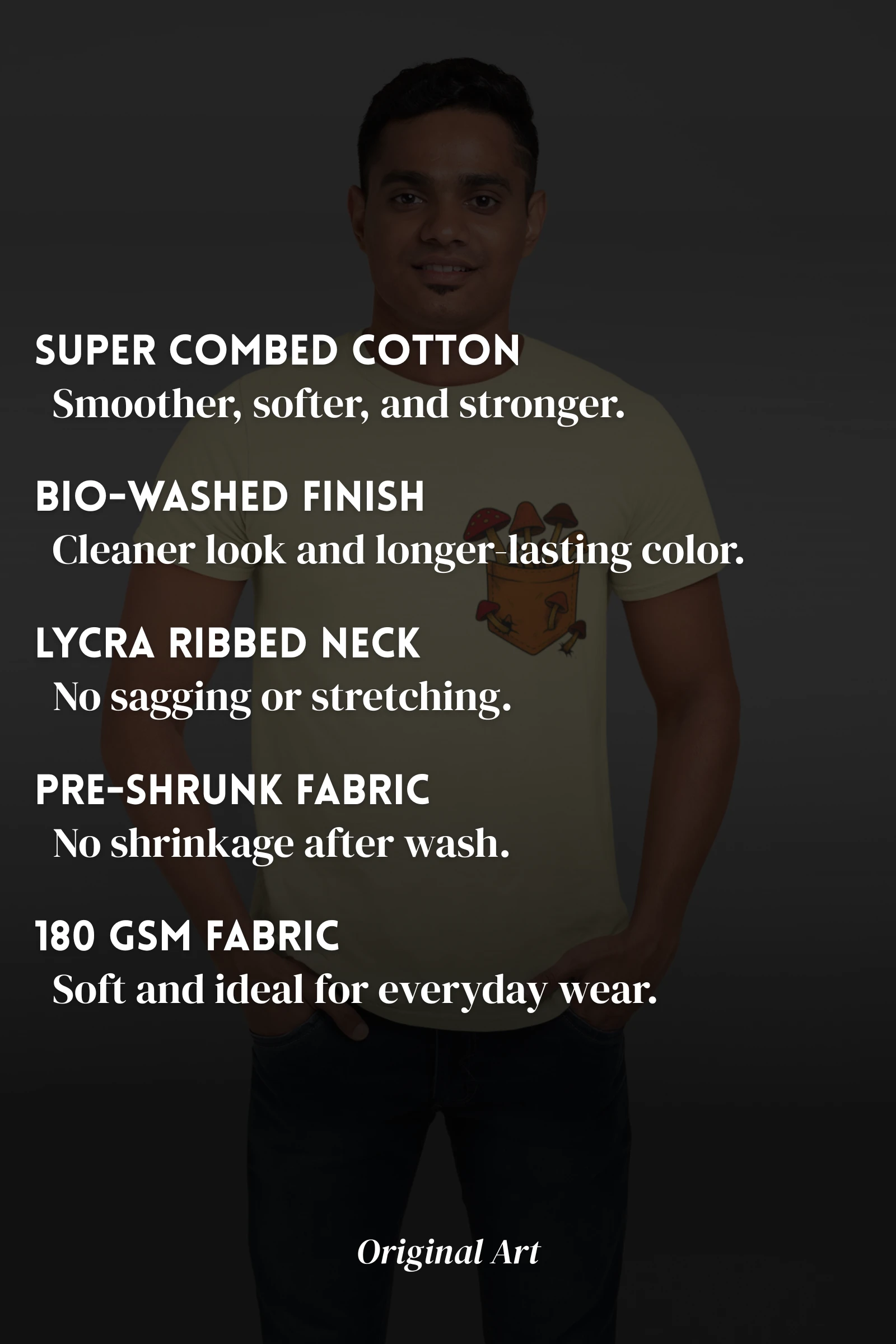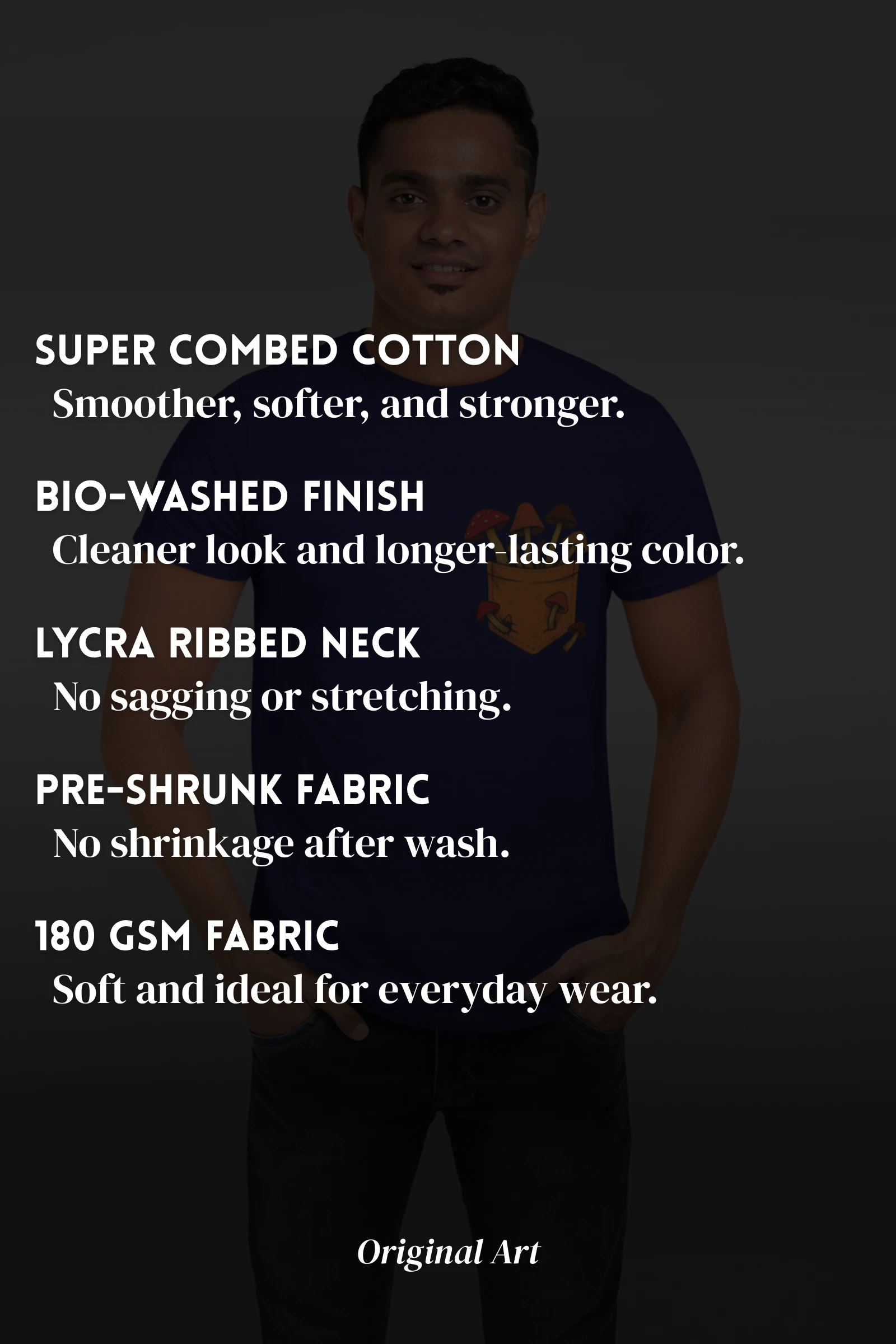 Super Combed, Pre-Shrunk & Bio-Washed for comfort, fit, and long-lasting softness.