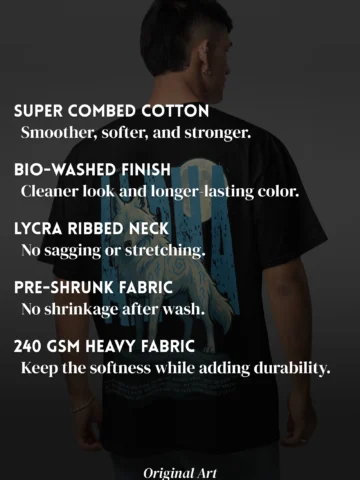 Woven from 240 GSM premium heavy cotton, this oversized tee mirrors the Alpha’s presence — steady, sharp, and unmistakable.