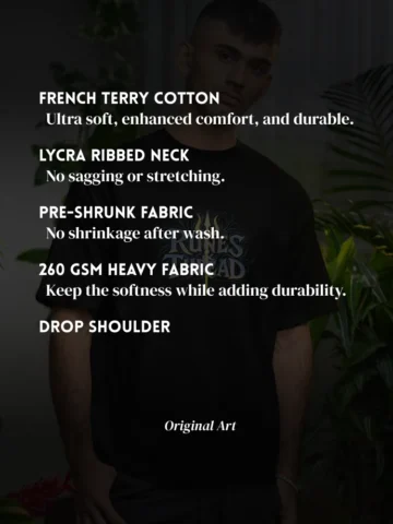 Built in 260 GSM French Terry cotton, this oversized drop-shoulder tee brings premium weight and structure with a soft, breathable feel. It holds shape, drapes clean, and pairs effortlessly with denims, cargos, or layered fits.