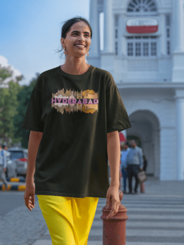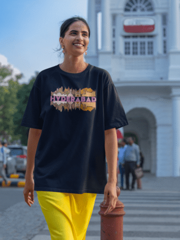 Whether you’re reminiscing about the days spent savoring biryani, exploring the bustling bazaars, or enjoying a stroll along the Hussain Sagar, this tee is a tribute to your roots.