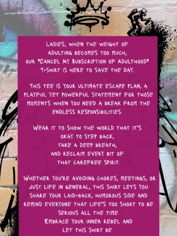 For those days when adulting feels like too much, embrace your inner rebel with our “Cancel My Subscription of Adulthood” tee.