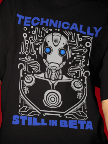 Everybody thinks they are complete and yet is a work in progress, the outcome of which is unpredictable. Embrace this dynamic duality of human nature with our “Technically Still in Beta” T-shirt.