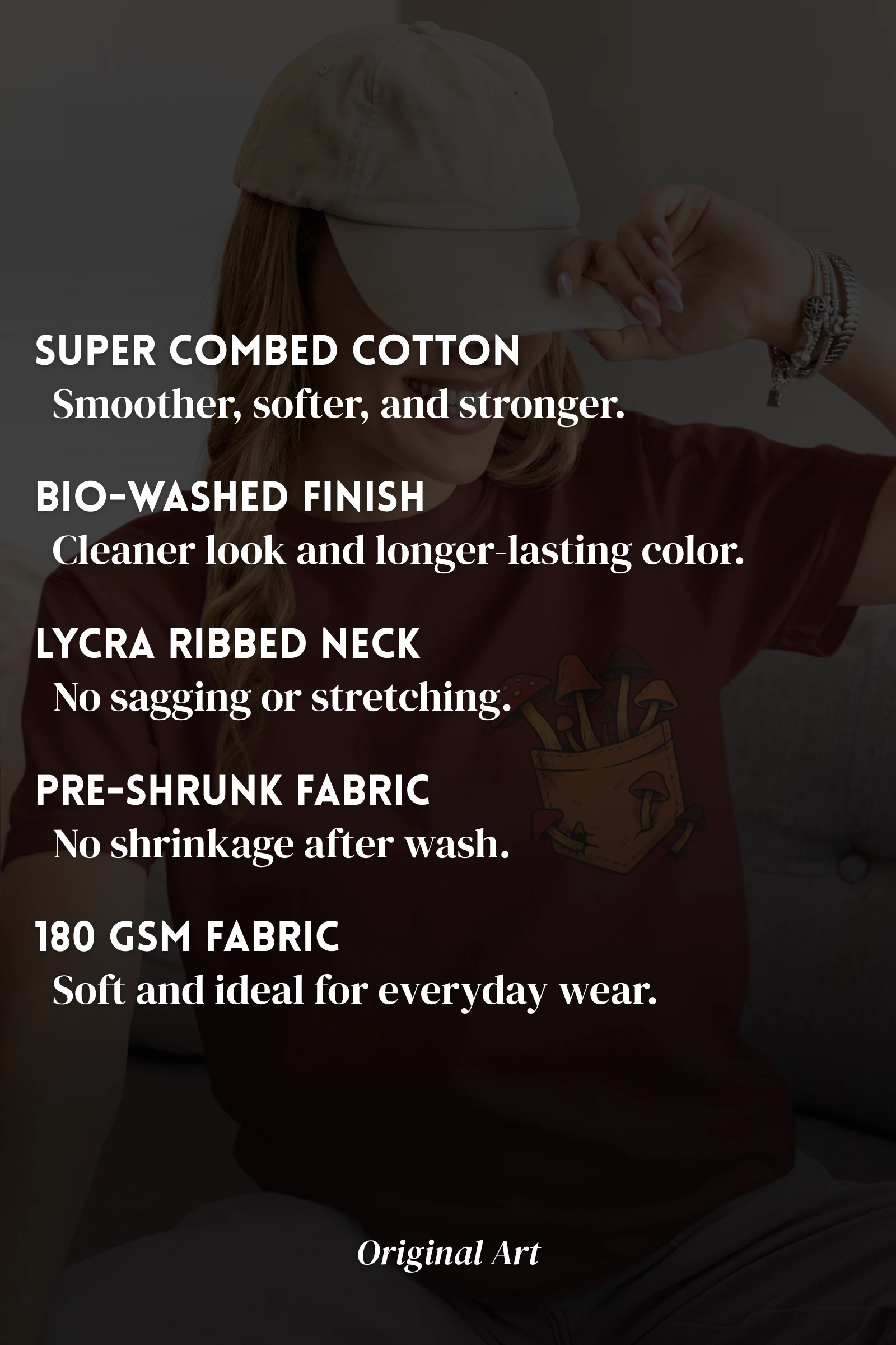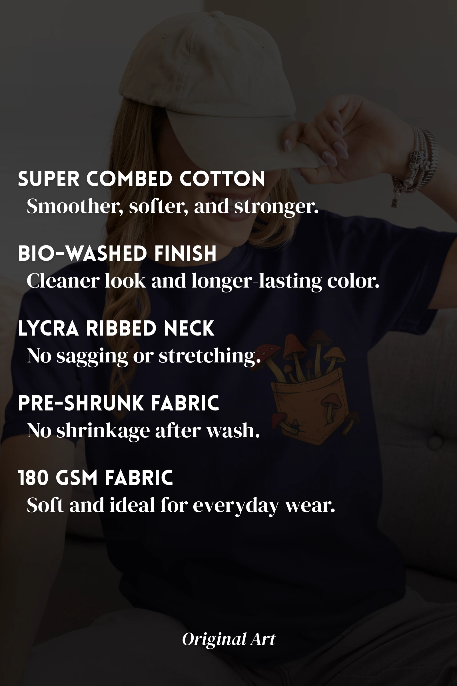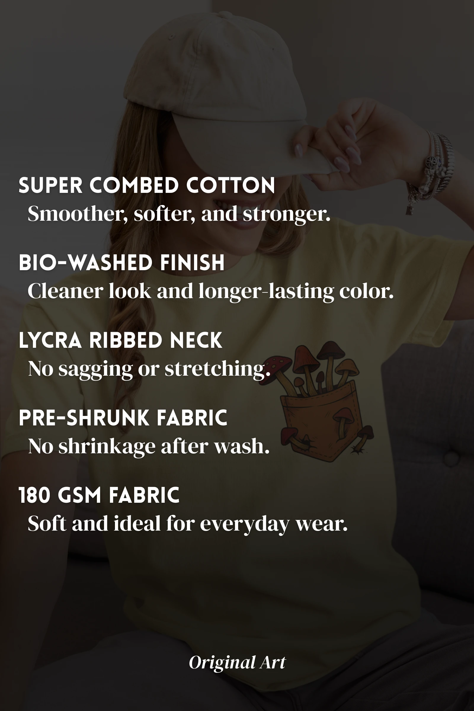 Super Combed, Pre-Shrunk & Bio-Washed for comfort, fit, and long-lasting softness.